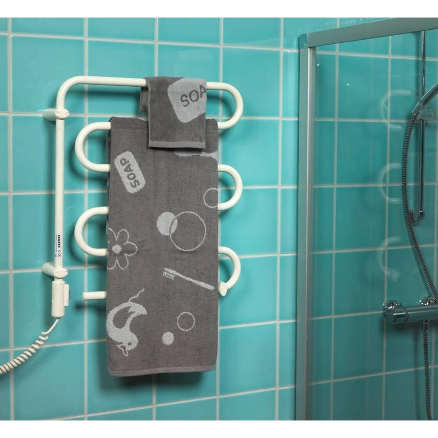 A törölközőszárító IP44 érintésvédelmi osztályba tartozik, kifröccsenő víznek ellenáll. Mindegyik készülék 230V feszültségű hálózatról táplálható, villásdugóval felszerelt,