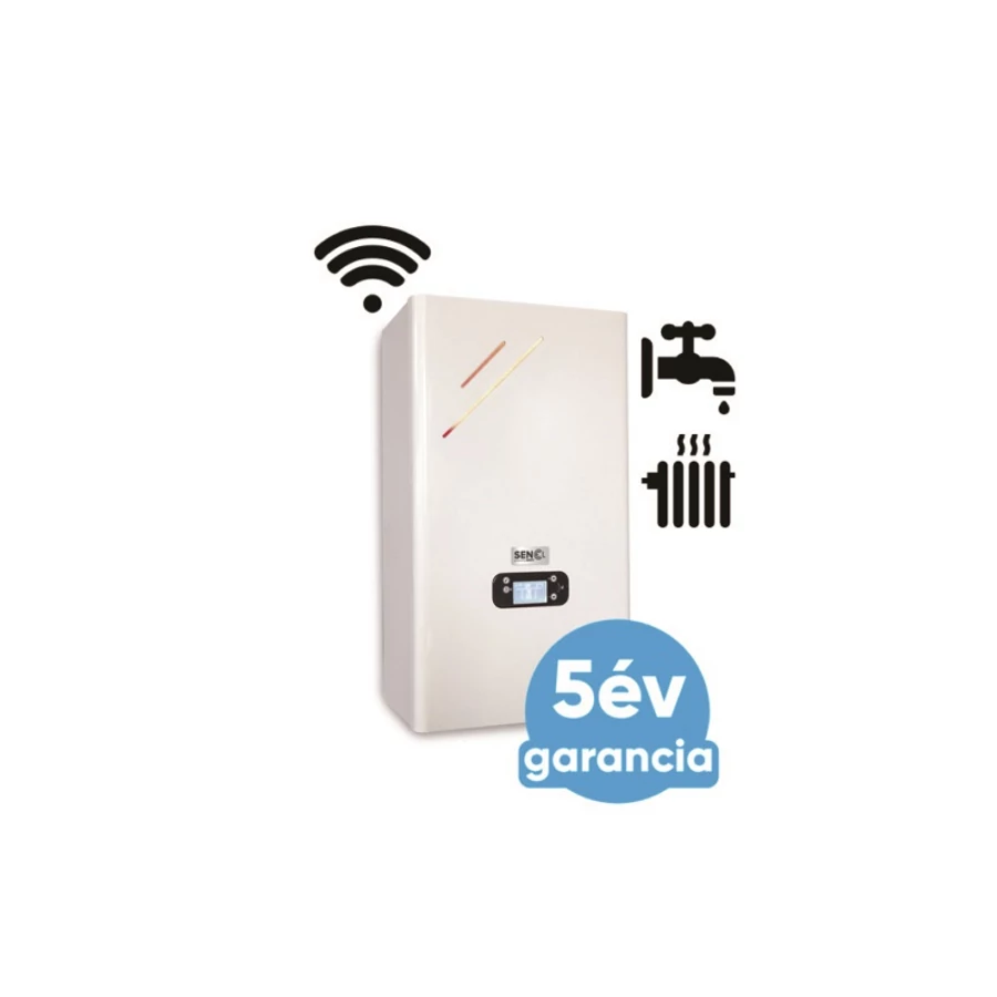A piac egyik legkisebb befoglaló méretű kombi rendszerű elektromos kazánja, központi fűtéshez és átfolyó rendszerű használati meleg víz előállításhoz kialakítva, kiemelkedő 99,4 %-os termikus hatásfokkal és 15 kW hőteljesítménnyel.