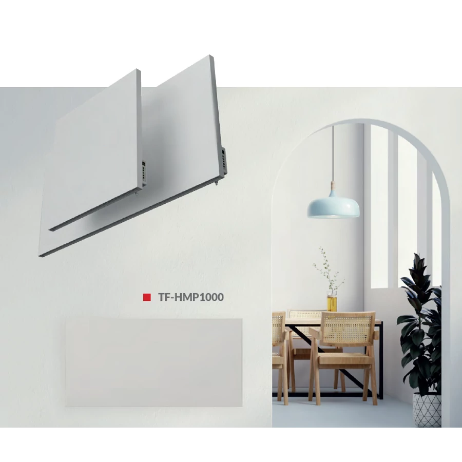 A TF-HMP oldalfali infrapanelek integrált WIFI hőszabályozóval vannak felszerelve, ami azt jelenti, hogy a fűtőberendezés vezérléséhez nincs szükség további kiegészítő termosztátra. Az infrapanel csatlakoztatása után a készüléket alkalmazás segítségével vagy manuálisan lehet üzemeltetni.
