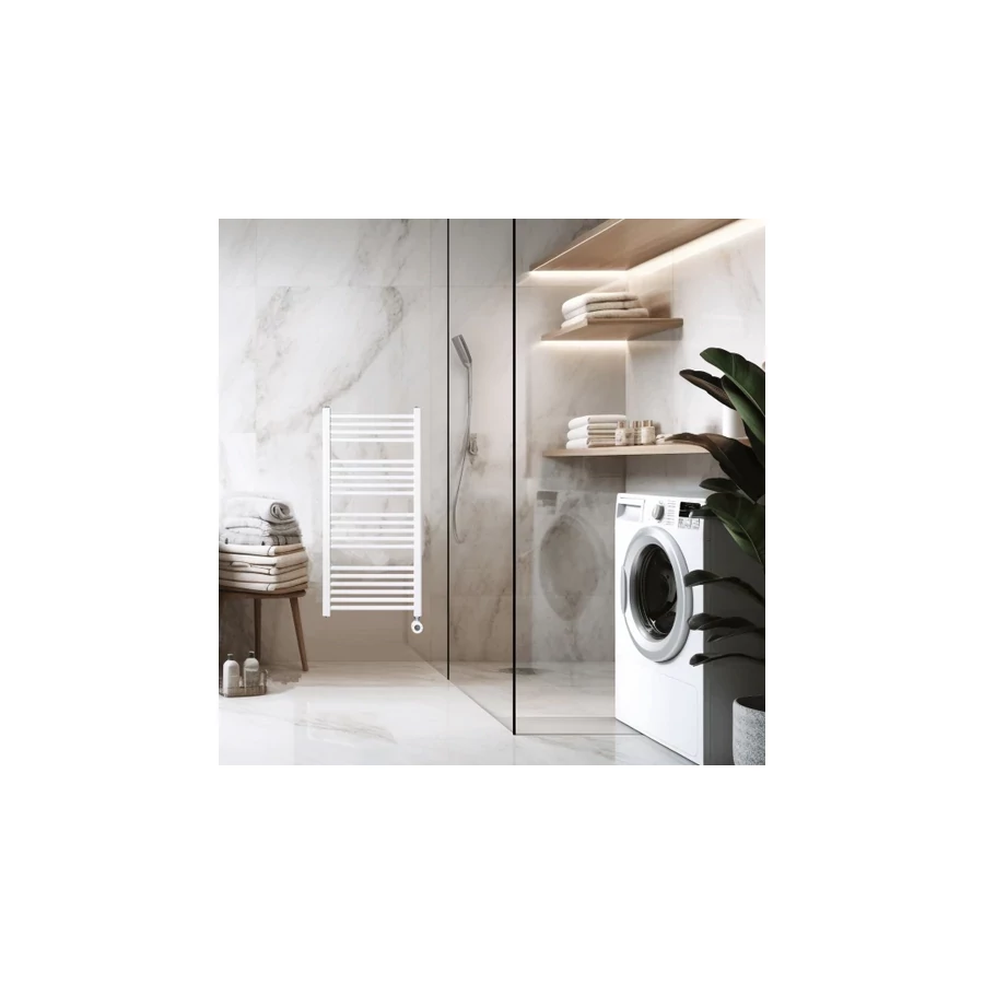 A Tolla Electric törölközőszárító radiátor letisztult, hagyományos megjelenésével könnyedén illeszkedik minden fürdőszobai környezetbe. 50 cm-es szabvány-szélességével pedig szűkebb falközökbe, kisebb helyiségekbe is elfér (teljes magassága 1290 mm). 700 Watt maximális fűtési teljesítménnyel üzemel; a beépített fűtőszál felfűti a fűtőfolyadékot, mely folyamatos keringésbe kezd. A speciális fűtőfolyadék jó hőközvetítő, elenyésző a hőtágulása és nem okoz korróziót a radiátor belsejében.